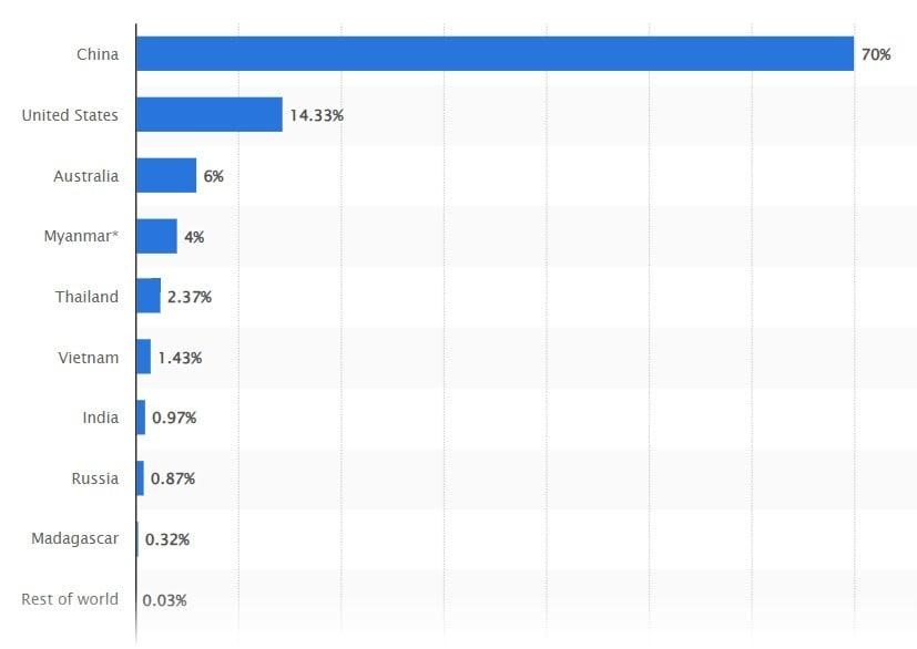Distribution of production of rare-earth metals in the world (in%) as of 2022 can be seen in the diagram.
